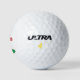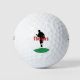 Golfer Silhouette On The Green custom golf balls. Black silhouette of a celebrating golfer with a golf club in his hand and on the green. Personalised with your name across the front in red. You can customise further by changing the font and colour in the design tool edit section when personalising.