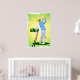 Bright yellow and green golfer swinging a golf club with sunbursts in the back poster.