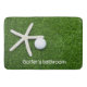 This Golfer's bathroom has a green grass bath mat with golf balls on it. It's the perfect place to relax after a round of golf.