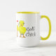 Golfing chick in curly text with a yellow chick holding a golf club and the flag in a golf hole is a funny gift design for golfers.