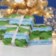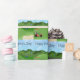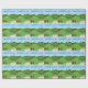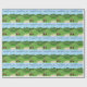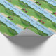 This sporty Golfing Father's Day Wrapping Paper features a golf course background with a sand trap and golf flag, a red golf cart, a blue golf cart both with golf bags. Stylised fish text is Happy Father's Day. Perfect for wrapping Father's Day Gifts. Choose your media and size of wrapping paper.