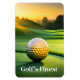 This flexible magnet is shown with a photo print of a golf ball on display for golf's finest.