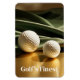 This flexible magnet is shown with a photo print of golf balls on display for golf's finest.