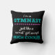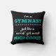 FUN gymnastics throw pillow with the text, "I'm a GYMNAST... just like a 'normal' girls except MUCH COOLER" ©gollygirls.com