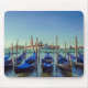 Painting of gondolas pier row anchored photo on Canal Grande with San Giorgio Maggiore church in the background, Venice, Italy. Parked gondolas on Piazza San Marco