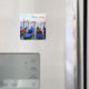 This customisable magnet makes the perfect present or souvenir for anyone fond of Venice, Italy. This image shows the Giudecca Canal seen from Sestiere San Marco, with a group of gondolas covered with blue tarps next to the shore in the forefront, and the San Giorgio Maggiore Basilica in the background.