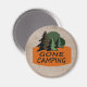 Gone Camping Logo with woods in green on orange background celebrates the Great Outdoors. Hike, fish, swim, commune with nature. Perfect gift for sportsmen and women, nature lovers, hikers, scouts and scoutmasters, or anyone who enjoys tents, campers, trailers, sleeping bags and campfires.