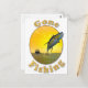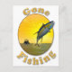 A sport fish on a fisherman's line in early morning with the caption "Gone Fishing" above and below the image.