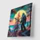 Colourful Sasquatch walking on the mountain under a full moon