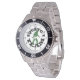 Fun Gone Squatching Squatch team circular text and numerals and green Bigfoot Sasquatch motif for cryptozoology fans, easily personalise the watch style from a selection of choices of bezels and strap colours. Visit the CUSTOMIZEDGIFTS STORE for matching products and more funny Gone Squatching gifts.