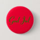 Red button with green text Good Christmas in multiple sizes. Round. Apply to your coat or jacket or as a decoration in different contexts.
