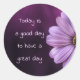 A close up photo of a purple flower and an inspirational quote "Today is a good day to have a great day"