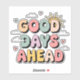 Start every day with a smile in this Good Days Ahead graphic Sticker ! Featuring bold retro-style bubble letters in pastel colours, playful clouds, hearts, and a bright sun peeking out, this feel-good tee spreads positivity everywhere you go. Perfect for spring and summer, this motivational design is great for women, teens, and anyone who loves cheerful, vintage-inspired vibes.