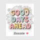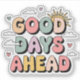 Start every day with a smile in this Good Days Ahead graphic Sticker ! Featuring bold retro-style bubble letters in pastel colours, playful clouds, hearts, and a bright sun peeking out, this feel-good tee spreads positivity everywhere you go. Perfect for spring and summer, this motivational design is great for women, teens, and anyone who loves cheerful, vintage-inspired vibes.