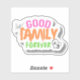 Celebrate family with our "Good Family Forever" sticker! Featuring a heartwarming message, this vibrant design is perfect for scrapbooks, photo albums, or home decor. It’s ideal for showcasing your family pride on laptops, water bottles, and more. A beautiful reminder that family bonds last a lifetime!