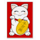 The maneki neko is a cat that symbolises good fortune in Japan. This particular cat beckons with its right paw and holds a koban coin with the other. You can use the customise it button to change the background colour if you like.