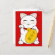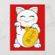The maneki neko is a cat that symbolises good fortune in Japan. This particular cat beckons with its right paw and holds a koban coin with the other. You can use the customise it button to change the background colour if you like.