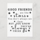 This design captures the essence of lasting friendship, using the analogy of stars to illustrate the unwavering presence of good friends. It's a reminder that true friends are always there, offering support and comfort even when distance or circumstances keep you apart. This quote resonates with anyone who cherishes the enduring bond with their closest friends.