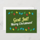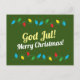 Merry Christmas postcard decorated with colorful lights. The card is both in Swedish and English languages.