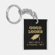 Good Looks and Now a Diploma Too Funny Graduation Keychain. Funny quote for a graduate - Good looks and now a diploma too. Golden graduation cap and typography on a black background. A great gift for a graduate who graduated.
