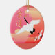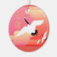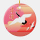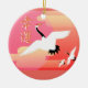In Japan cranes are a symbol of good luck. This ornament has flying cranes against a sunrise coloured sky, and the Japanese characters for "good luck"