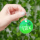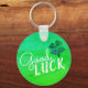 Good Luck Four Leaf Clover Shamrock keychain. Modern abstract green pattern with trendy white typography quote Good luck and hand-drawn clover with four leaves for luck.