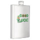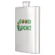 The product is a good size and came exactly as it was pictured. The lid is not attached to the flask, which could be dangerous on drunken nights... The print came out surprisingly well and looks very sharp. Would definitely recommend.
