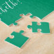 Light to dark green gradient jigsaw puzzle features "Good Luck, [NAME]" in a white script font near the bottom. Personalise the funny text in the sidebar. Makes a great custom gift for someone who loves a challenge.