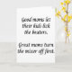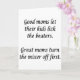 Funny design reads, in black letters,"Good moms let their kids lick the beaters. Great moms turn the mixer off first." Great for a laugh and those with a good sense of humour or humour. Terrific gift for any kid, old or young on a birthday, at Christmas, Kwanzaa. Great for mum on Mother's Day, too.