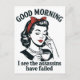 Dark humour meets retro charm with this witty morning quote: "Good morning, I see the assassins have failed." Perfect for coffee lovers and anyone who enjoys a sarcastic start to the day.