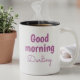 This elegant "Good morning darling" design features stylish modern typography, making it a perfect romantic gift for your partner, spouse, or fiance.