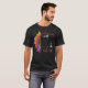 I give wanted to give this a 4 instead of a 5 because these Basic DARK T0shirts run unexpectedly SLIM or Narrow. Which is great if you do not have a potbelly, but I have a paunch. It isn't the shirt's fault that I've got a beer belly. The design and shirt itself is a quality cotton shirt. The color is more of a deep purple, but still a very pretty color. The Basic DARK T-shirts run a bit SLIMMER than the Basic Ts. The neck is a fraction narrower (or seems to be narrower) also. I'm a paunchy middle-aged woman and my neck is 12 inches (31cm) thick and the neckline fell about the same as in the photo of the man, and I had the desire to tug it a bit. So if you're a thick necked man or like loose shirts, be aware these are slimmer shirts. Once I get rid of my lockdown paunch it'll look great. The shirt washed well in cold water with no apparent bleeding. We don't have a dryer, so it hung dry. Did not shrink. Love the colors and the design. The design looks smaller on my shirt than it does on the model on-line. But still, it looks good on the shirt. The printing looks as it does on the model, just the size seems fractionally smaller. Washed garment in cold water, hung dry and design appeared unaffected.