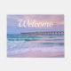 Customisable welcome doormat - There's something about the ocean that is so therapeutic. I took this just as the sun was coming up behind me on a beautiful summer morning. The Navarre Beach Fishing Pier in Florida extends out over the ocean as the sky glows natural purple and pink colours. Looking for more prints or products? Feel free to visit my store: http://www.zazzle.com/timelessmomentsphtgy