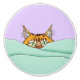 An orange tabby cat is peeking over mint coloured blankest to stare at their human in hopes to wake them up bright and early.