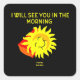 You can order my drawing of a sleeping sun laying on a comfy pillow, text says, "I Will See You In The Morning."  This adorable drawing makes the perfect gift for any occasion or a gift to wish that someone a good night greeting.  Now you can order my drawing that I call, "Good Night Sun," added to this square sticker.  You can order this square sticker in small and large.
