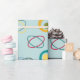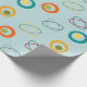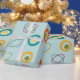 This wrapping paper has a mid-century modern design of ovals forming an atomic shell and small circle inside larger circles in orange, green, gold, light blue, turquoise, and red. If you like the design but prefer different colours, message me.