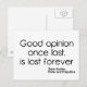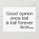 A famous quote from Jane Austen's Pride and Prejudice: Good opinion once lost, is lost forever.