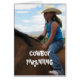 Funny Western card offers helpful words of wisdom or silly parenting tips from our friendly horse herd friends. Fun for parents of daughters. Cover features a photo of a little cowgirl riding a Tennessee Walking Horse; an Australian cattle dog on the back. Folks who love rural life, ranch life, country living or life on the farm will relate! You can leave card background white or pick a custom colour. From the original "Cowboy Parenting Series" by She Wolf Medicine.