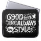I absolutely love this artwork, it looks stunning. Also the quality of this product was excellent. My only issue was that this 15 inch sleeve was huge. It drowned my laptop. My laptop is 14 inches. So even through I have had to exchange this product, I want to show how good the black and white looks. Wonderful quick helpful service from zazzle customer service too. Thank you.
