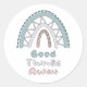 Good things await motivational boho rainbow classic round sticker