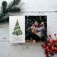 This humourous holiday card features a hand lettered illustration of a Christmas tree that says "good tidings and cheer and to hell with this year." It has space for a single photo as well as a short greeting and your name(s). The back has a colour coordinating stripe pattern.