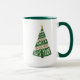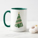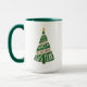This funny holiday mug features a hand lettered illustration of a Christmas tree that says "good tidings and cheer and to hell with this year" on both sides.