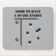 Good to Have a Spare Engine (in the P-38). Vintage black stencil lettering on bullet-ridden factory aluminium P-38 nacelle.