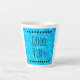 Latte cup which says: Good Vibes, with a photograph of clear blue pool water, with shimmering reflections.