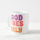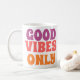 This cute white mug features the uplifting phrase “Good Vibes Only” in a playful, colorful font, making it perfect for coffee, tea, or hot chocolate.