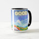 Indulge in a daily dose of positivity with this charming mug featuring the uplifting message "Good Vibes Only" against a whimsical backdrop of rolling fields, vibrant flowers, & fluffy clouds. Perfect for starting your day with an optimistic mindset or enjoying a cosy beverage break, this mug exudes cheerful vibes & adds a touch of tranquillity to your routine. Embrace the power of positive thinking with each sip from this delightful mug.