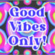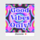 A super fun, colourful, neon 80s / 90s design saying Good Vibes Only! Retro and bright, using pinks and blues and yellow and aqua and purple and black!
