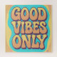 Fun quote text groovy 70s style typography with text good vibes only design.