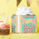 Fun quote text groovy 70s style typography with text good vibes only design.