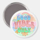 Cute retro style soft colours purple, blue, pink and green vintage Good Vibes Only quote. Flowers, Rainbow, mushrooms and other fun 1970's style hippie graphics.